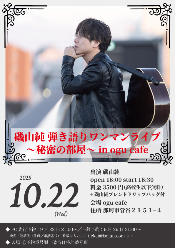 磯山純 弾き語りワンマンライブ〜秘密の部屋~ in ogu cafe