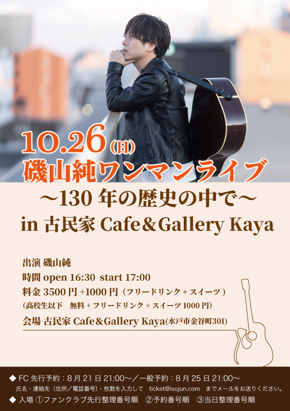 磯山純ワンマンライブ〜130年の歴史の中で~ in 古民家 Cafe&Gallery Kaya(水戸)