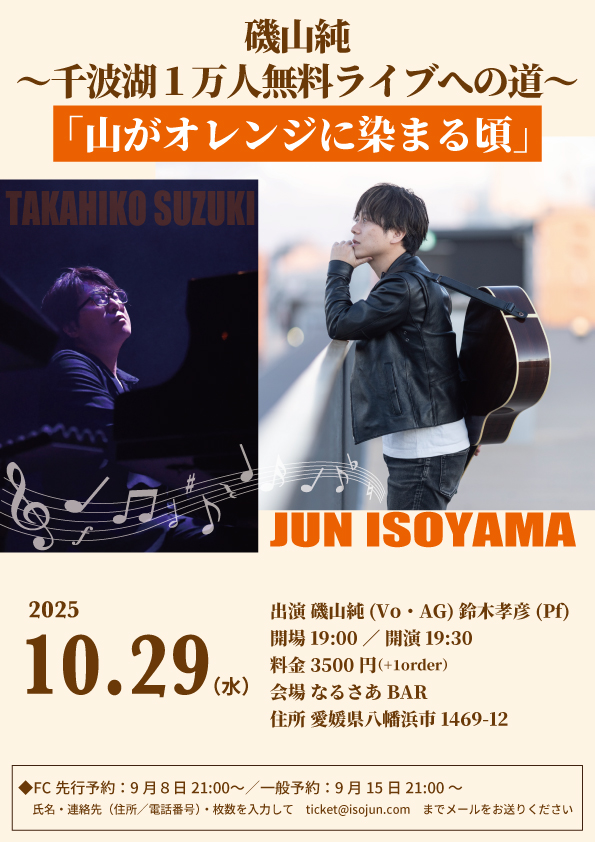 出演 磯山純(Vo,AG)・鈴木孝彦(Pf)