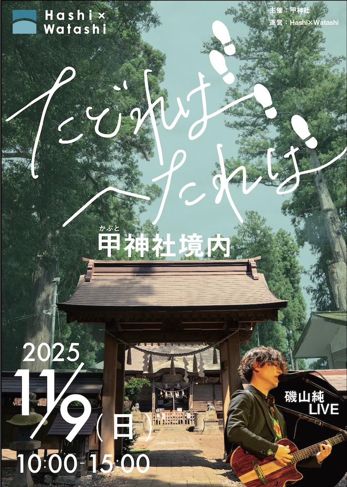 Live 2025.11.09 マルシェ「たどれば へたれば」 2025.11.9(日) 会場:甲神社(常陸大宮市下町219) 出演時間 13:00〜、14:00〜 出演 磯山純 鈴木孝彦 境内に約20のキッチンカーやハンドメイドショップが出店します。 イベント詳細はこちら https://www.city.hitachiomiya.lg.jp/kurashi_gyousei/kankou_bunka/history/shuchubakuryou/page011077.html BACK
