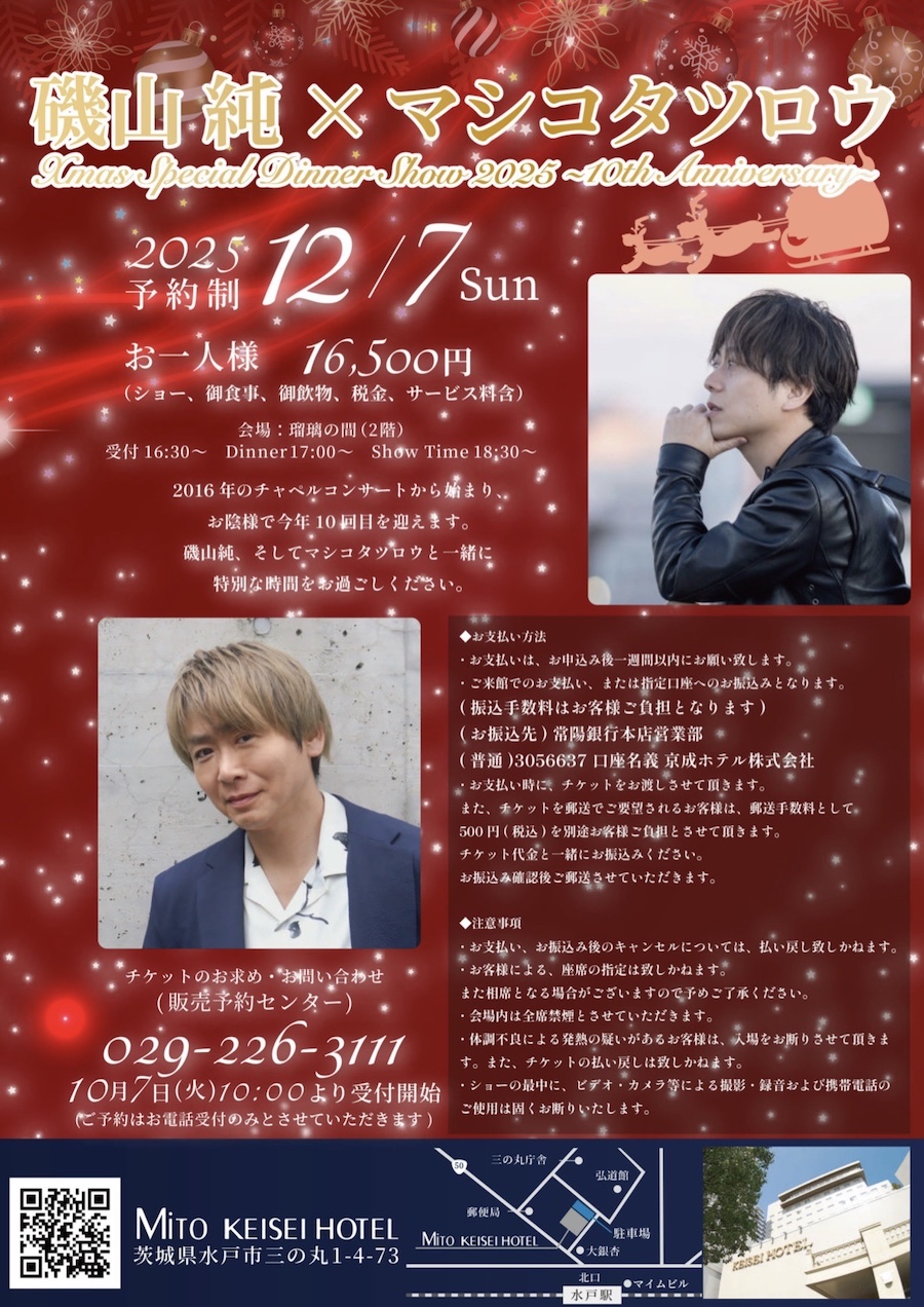 Xmas Special Dinner Show 2025 磯山純×マシコタツロウ in 水戸京成ホテル