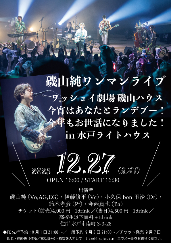 磯山純 ワンマンライブ~ワッショイ劇場 磯山ハウス 今宵はあなたとランデブー!今年もお世話になりました!~