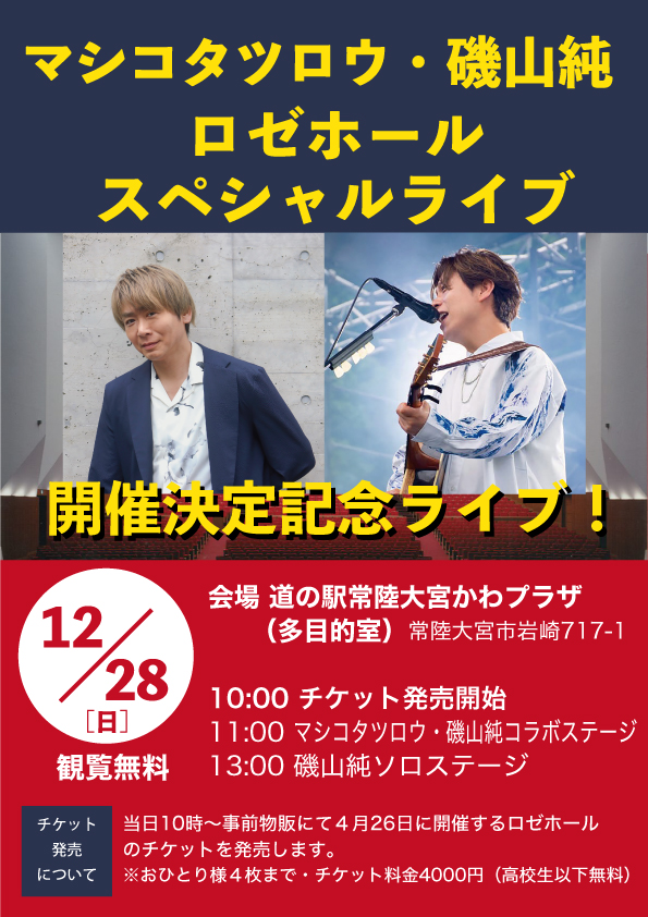※当日10時より、4月26日(日)常陸大宮市ロゼホールで開催するライブチケットを発売します。