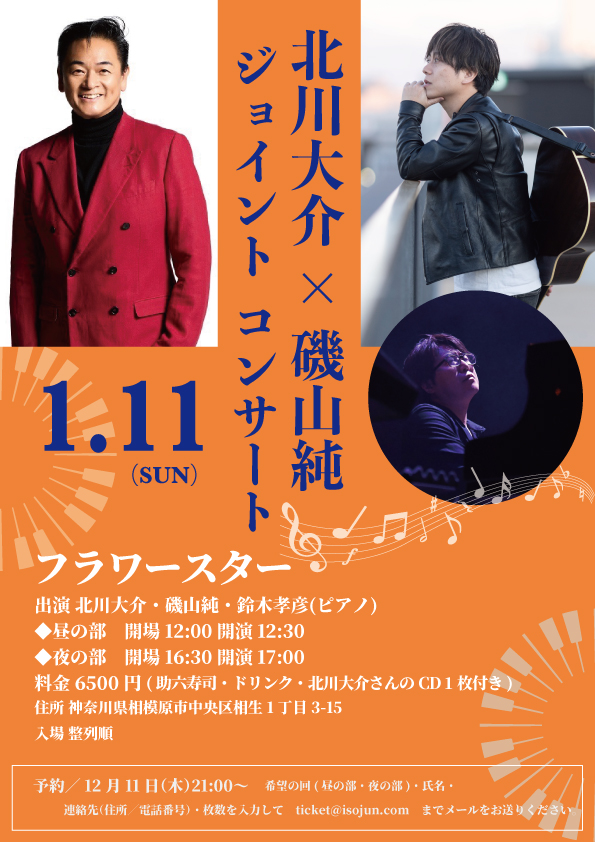 料金 前売り 6,500円(助六寿司・ドリンク・北川大介さんのCD1枚付き)