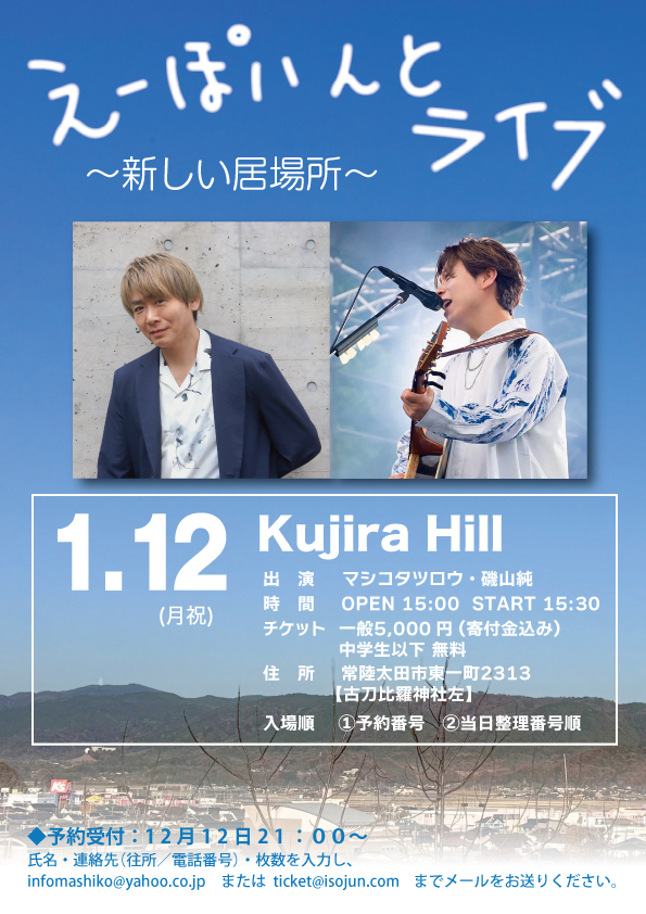 氏名・連絡先(住所/電話番号)・枚数を入力して ticket@isojun.com までメールをお送りください。