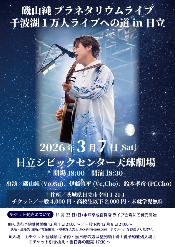 磯山純 プラネタリウムライブ 千波湖1万人無料ライブへの道 in 日立