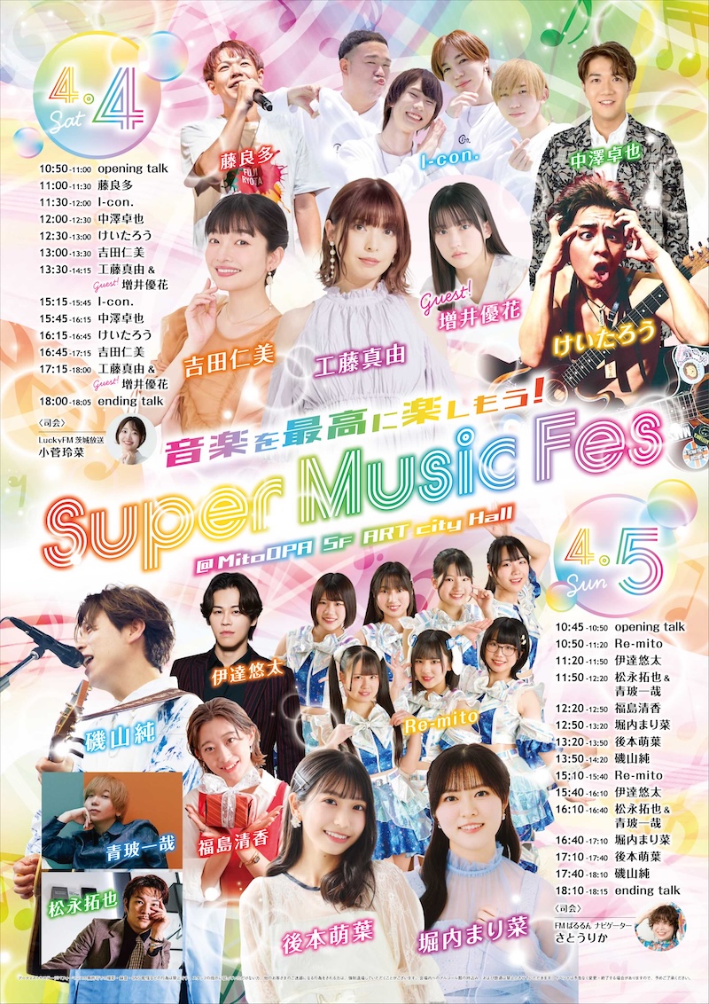 Live 2026.04.05 音楽を最高に楽しもう!〜Super Music Fes〜 in 水戸OPA 2026.4.5(日) 会場 水戸オーパ5F Art City Hall 観覧無料 出演予定時間 13:50〜、17:40〜 BACK