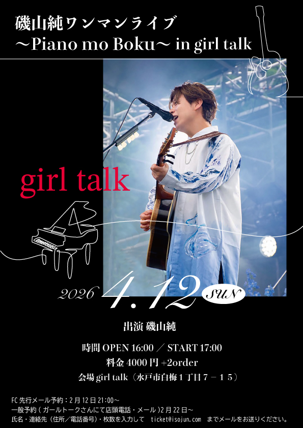 磯山純ワンマンライブ〜Piano mo Boku〜 in girl talk