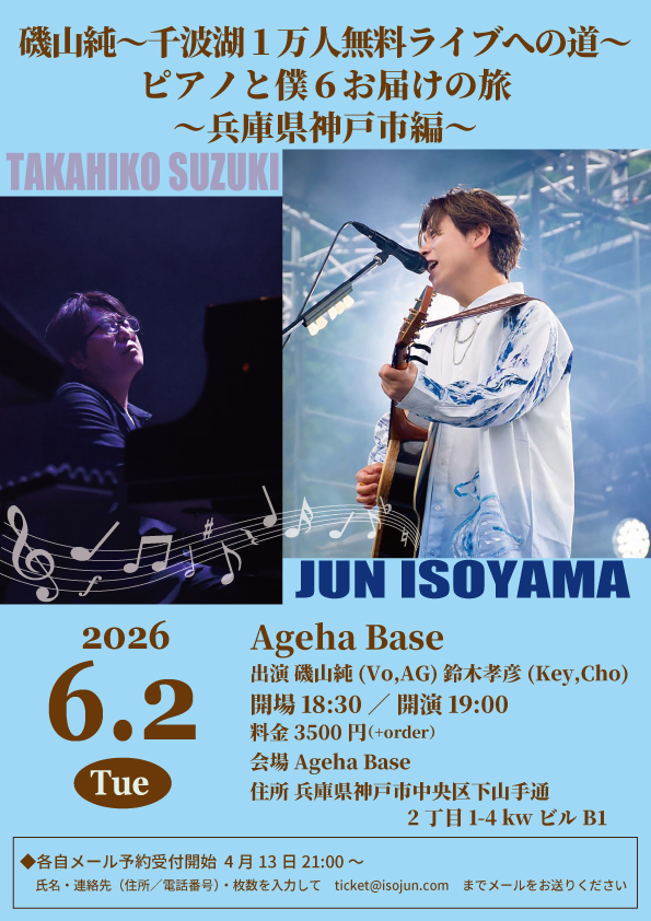 出演 磯山純(Vo,AG)鈴木孝彦(Key,Cho)