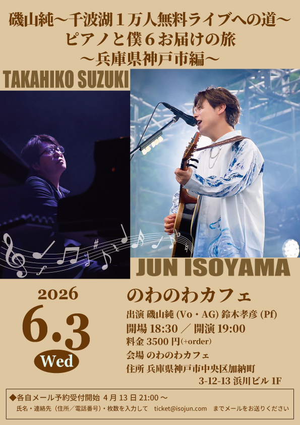 磯山純 千波湖1万人無料ライブへの道〜〜ピアノと僕6お届けの旅 兵庫県神戸市編〜